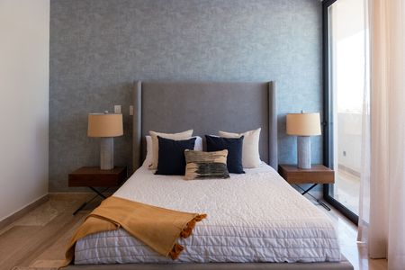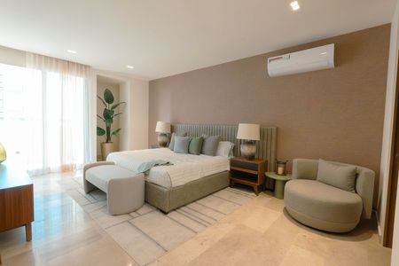 Las unidades se entregan con fan coil en área social, minisplit inverter en habitaciones, carpinterías de clósets, carpinterías bajo mesetas, carpinterías inferiores cocina, parrilla eléctrica, horno eléctrico, calentador eléctrico.
