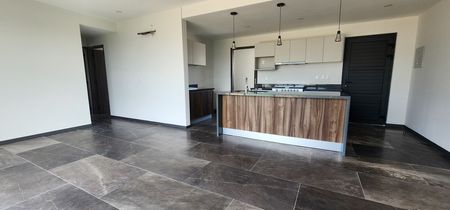 Este departamento en renta cuenta con sala, comedor, cocina equipada con barra de desayuno, lavandería, recámara principal con baño y vestidor, recámara secundaria con closet y baño completo que da servicio a la recamara secundaria y al área social.