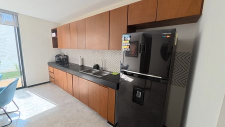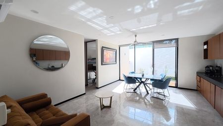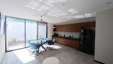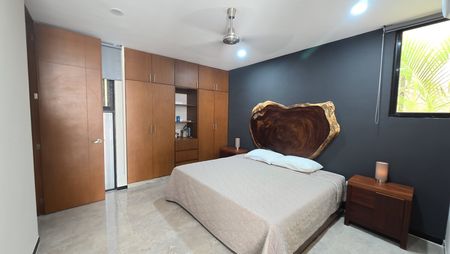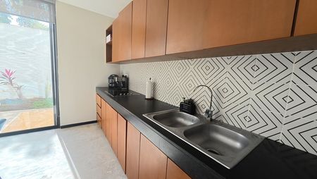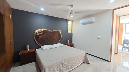 Departamento en renta ubicado en Planta Baja en un complejo de treinta y seis departamentos en Temozón norte es de entrega inmediata y se encuentra amueblado con una pequeña alberca y jardín.