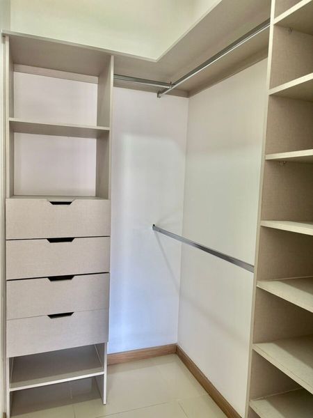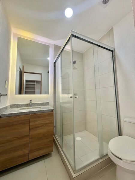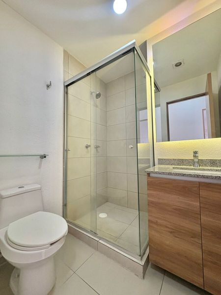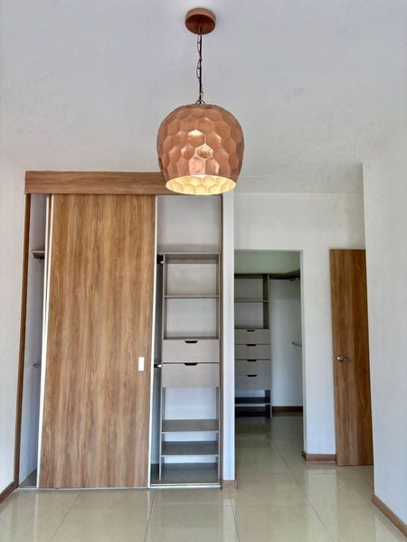 Cuenta con 2 recamaras cada una con closet, y la principal con vestidos y baño completo, sala comedor, cocina con cubierta de granito, área de lavado, baño completo de visitas y cochera para 2 autos en sótano.