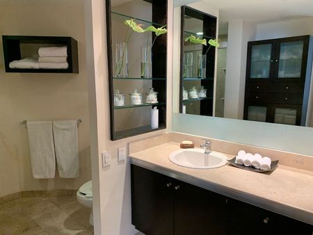 Es un departamento , cuenta con tres habitaciones cada una con baño completo y vestidor, sala, comedor, family,bar, baño de visitas, amplia cocina bodega, tres lugares de estacionamiento.