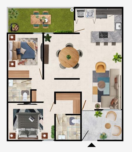 Este modelo es un departamento ubicado en el exclusivo desarrollo de Ziré en Zakia. Se distingue por su diseño arquitectónico moderno, que integra materiales naturales y amplios espacios para crear una conexión armoniosa con el entorno.