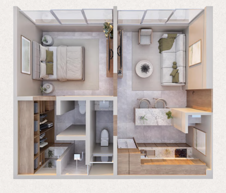 Recámara con Baño y Closet Vestidor.