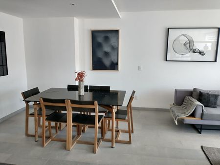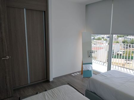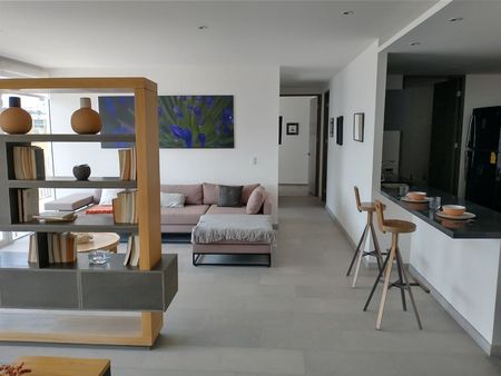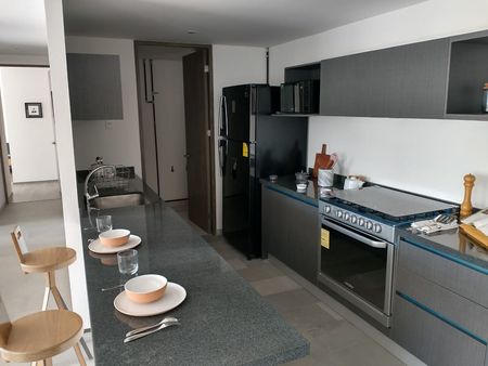 Consta de 2 recamaras , 2 baños, sala, comedor, cocina, terraza , área de lavado, 2 lugares de estacionamiento, excelentes acabados pisos de mármol en áreas comunes , piso laminado en recamaras, plafones y muros terminados o pintados, cocina integral acabado con parrilla, carpintería general completa en closets, vestidores y puertas, baños 100% terminados con canceles, iluminación general en plafones con lámparas led ahorradores.