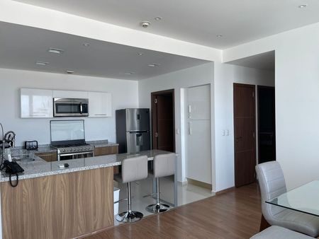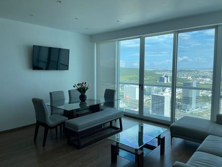 Se ofrece en venta y renta un exclusivo departamento ubicado en el piso 21 de Juriquilla Towers, una de las zonas con mejor plusvalía en Querétaro. Desde esta altura, disfrutarás de una vista increíble que acompaña perfectamente a una cómoda sala comedor equipada con aire acondicionado, ideal para relajarte o recibir visitas.