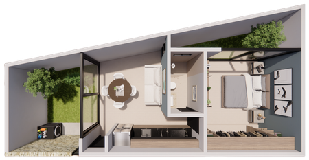 Desarrollo inmobiliario que consta de 24 departamentos ubicados al norte de Mérida, específicamente en la zona de Temozón Norte. Diseñado para ofrecer una experiencia de vida cómoda y contemporánea, el desarrollo presenta una variedad de opciones que incluyen departamentos de 1 y 2 habitaciones, brindando flexibilidad para adaptarse a diferentes necesidades y preferencias.