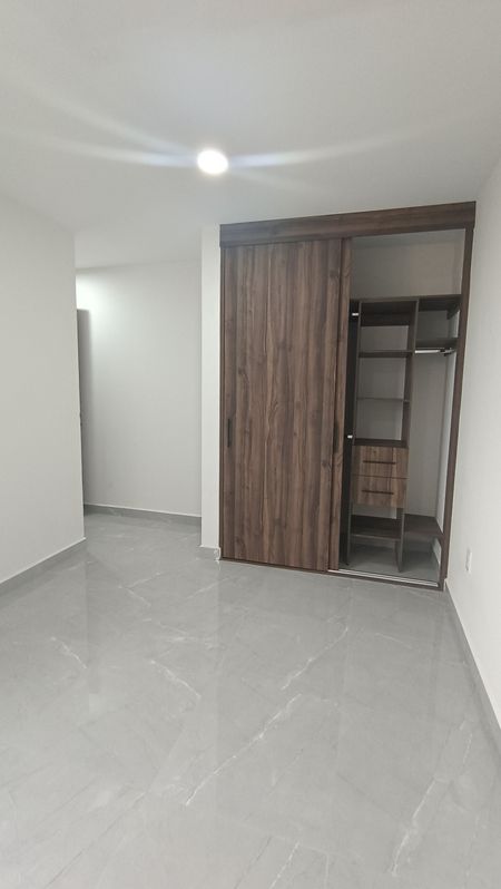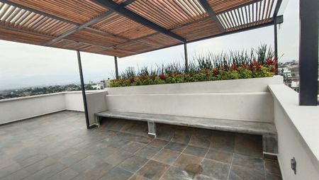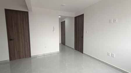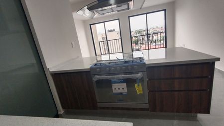Estrena departamento sala comedor con pisos de porcelanato, cocina integral con barra de granito,tres recamaras con closets, la principal con baño completo y otro baño completo que da servicio a los otras dos recámaras secundarias, terraza, acabados de primera calidad, área de lavado, roof garden común y un cajón de estacionamiento.