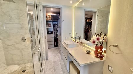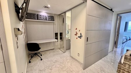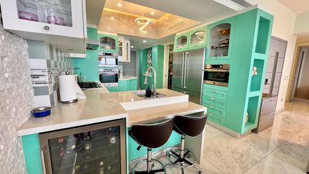 Unidad de distribución única con una cocina de gran tamaño que supera a las demás en el complejo. La antigua área de lavandería al aire libre ha sido cerrada e incorporada a la cocina, creando un espacio amplio para un mini bar, dos lavavajillas, dos microondas y dos fregaderos. La lavadora y secadora están ubicadas en el interior, protegidas de la intemperie. Un espacio versátil de dormitorio y oficina ha sido diseñado para acomodar a invitados adicionales, con una cama abatible empotrada de tamaño queen y un escritorio plegable. Cada uno de los dormitorios originales tiene su propio baño completo con bidés. Este impresionante apartamento está listo para ser ocupado de inmediato. Lahia Residence ofrece una variedad de amenidades, incluyendo un spa, gimnasio, club de playa y más.