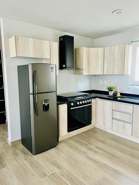 - Cocina integral moderna con barra de granito o cuarzo, alacenas amplias y diseño funcional.