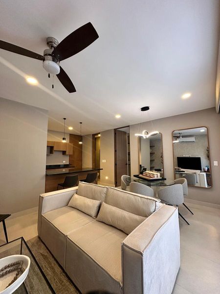 Se entrega con carpintería de madera de encino, en cocina, baños y closets, lámparas decorativas en sala y baños, espejos y cristal templado en baños.