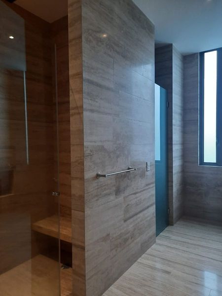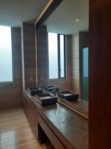 El departamento cuenta con ventanas de doble vidrio laminado, baños en mármol, terraza en mármol, sala comedor, cocina, desayunador y pasillo en mármol, diseño de iluminación (eléctrico) y plafones de tablaroca, aislantes para pisos y plafones en todo el departamento . Recámaras y vestidores en madera de ingeniería, pintura, carpinterías en hogal americano, incluye puertas de intercomunicación, muebles de baño y vestidores. Accesorios eléctricos más iluminación en todo el departamento con focos y manguera led, espejos y canceles en baños de recámaras.