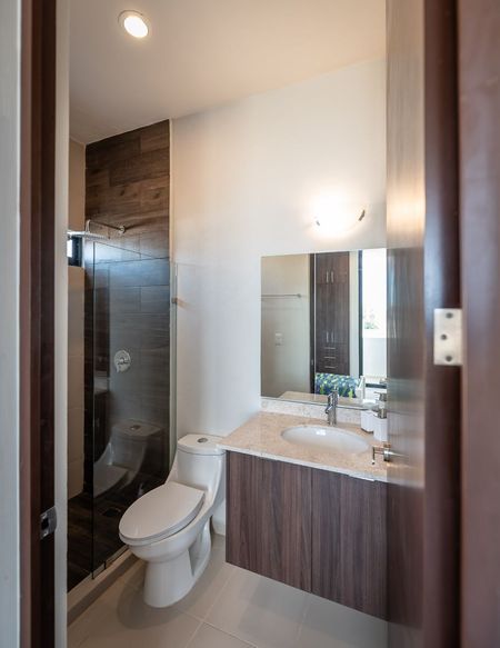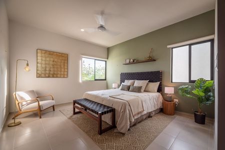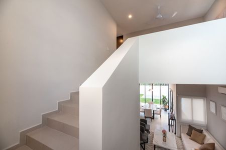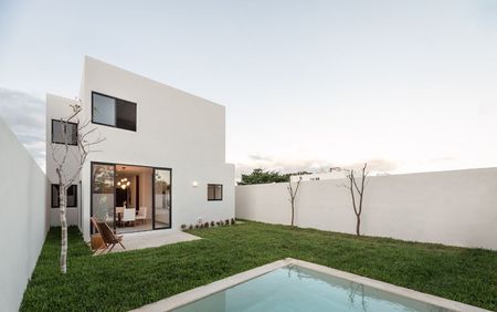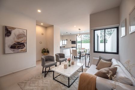 Casa en venta en una privada residencial al norte de la ciudad de Mérida, con orientación norte-sur y vista al área verde, casas de diseño urbano campestre dando como resultado una experiencia de modernidad, comodidad y privacidad.
