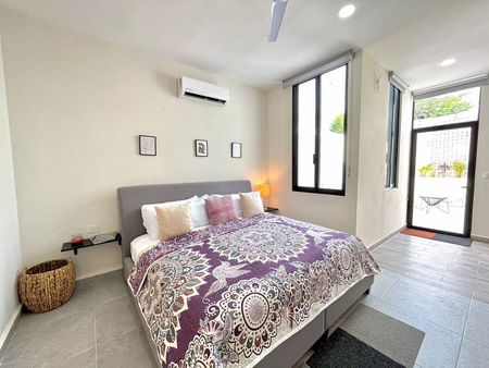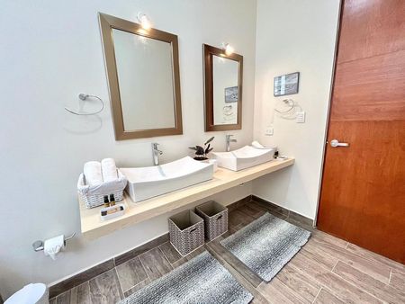 Completamente amueblada y equipada esta residencia doble altura, cuenta con 2 habitaciones en planta alta, ambas habitaciones cuentan con baño completo, closet de madera,