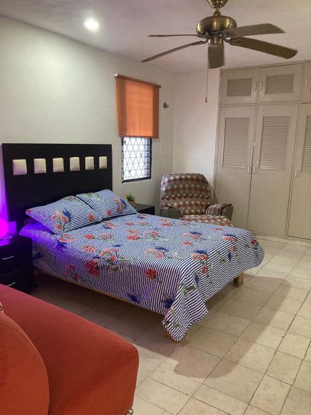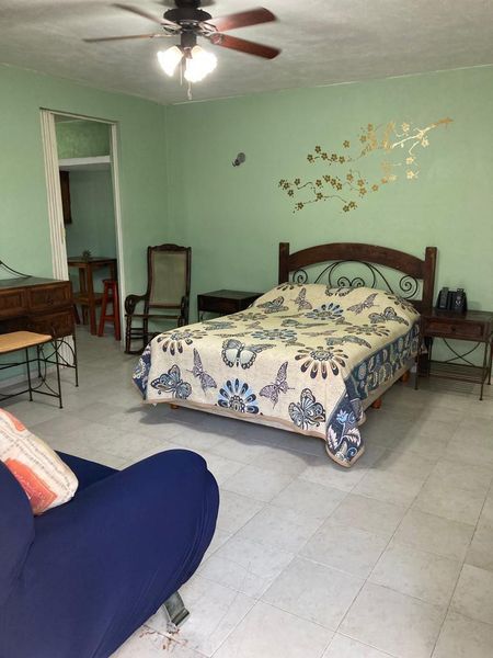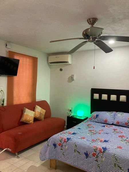 * Recamara principal con Área de sala comedor  recamara y cocina, closet vestidor y baño completo, equipada con AA y ventilador