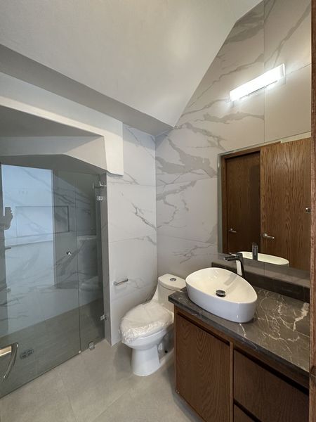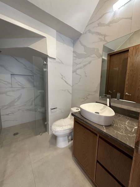 Recámara principal con gran vestidor, amplio baño con lavamanos doble.