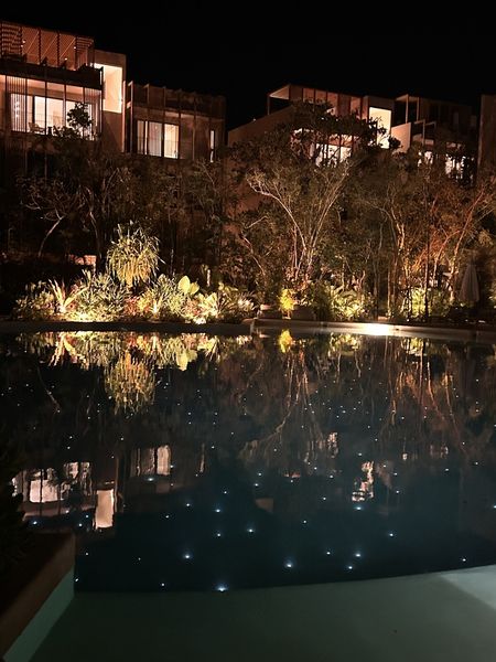 La alberca mas hermosa de Tulum, con luces que simulan las estrellas en la noche.