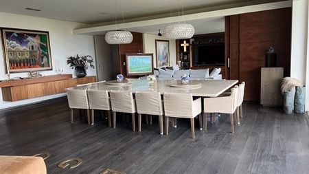 Magnífico departamento en uno de los mejores lugares para vivir en México, Club de Golf Bosques. Cuenta con acabados de primera, maderas y mármoles. Techos de doble altura. 6 estacionamientos. Cocina impecable de revista. Espectacular propiedad. La Casa Club más bonita de México.