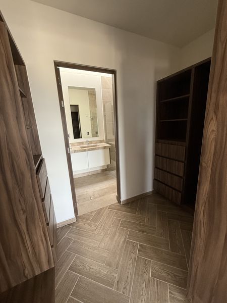 La recámara principal tiene el walking clóset y las dos de arriba también tienen sus closets. La de abajo sieve para una oficina, también tiene cuarto de TV.