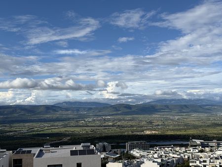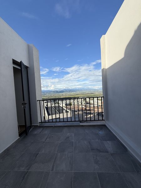 Tiene 245 metros cuadrados habitables; 3 habitaciones, todas con baño completo, en planta baja hay un estudio grande, o cuarta recámaras y hay baño completo en pb, también, Cocina abierta, techos muy altos, vista espectacular desde estancia y recámara principal, terraza en segunda planta.