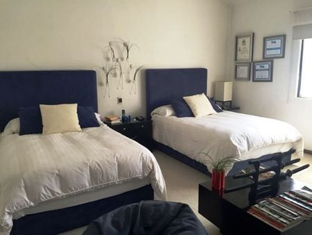 2 NIVELES, 3 RECAMARAS, 3.5 BAÑOS, 3 RECAMARAS CON BAÑO, COCINA EQUIPADA, DESAYUNADOR, 7 ESPACIOS PARA AUTOS, ESTUDIO, TV, 2 CUARTOS DE SERVICIO, JARDÍN, 2 BODEGAS, CALEFACCIÓN CENTRAL, BAÑO PARA CHÓFERES, PUERTA DE SEGURIDAD EN LA BASE DE LA ESCALERA HACÍA LAS RECAMARAS.