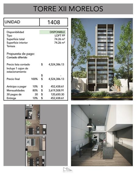 • Diseño tipo loft con techos altos