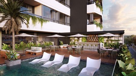 lobby, ludoteca, área de coworking, salón de tv, terraza con albera y área bar, baños generales, rooftop con área de grill, terraza para eventos, y garaje techado y acceso controlado 24/7