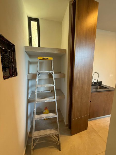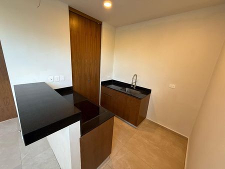 granito negro San Gabriel en meseta de cocina, puertas de triplay de tzalam, muros acabado yeso.
