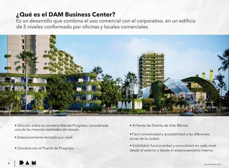 DAM es un proyecto de uso mixto que integra componentes residenciales, corporativos y comerciales. Esta iniciativa redefine la experiencia de habitar, laborar, descansar y crear en el entorno urbano. Sus espacios fusionan el arte con la vida cotidiana, ofreciendo un centro corporativo, cultural y comercial en torno a un parque central, junto con residencias verticales que conforman una comunidad ideal. Estratégicamente situado en una zona privilegiada del norte de la ciudad de Mérida