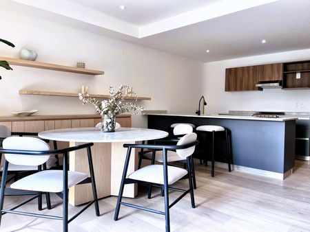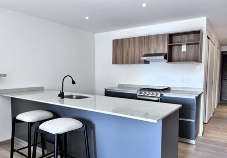 Sala, comedor con balcón y cocina abierta equipada con acabados de lujo. Medio baño para visitas. Cada departamento cuenta con 2 estacionamientos y con bodega y vigilancia 24/7.