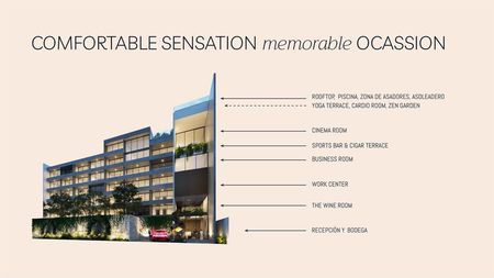 Roof top, piscina, zona de asadores, cigar terrace y cine room