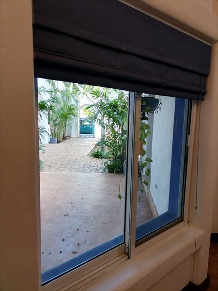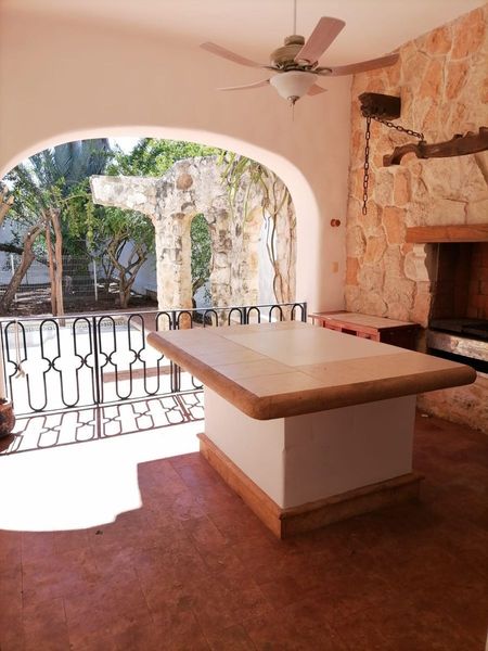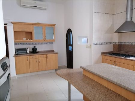 Cocina amplia con aire acondicionado, meseta de granito, isla central