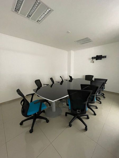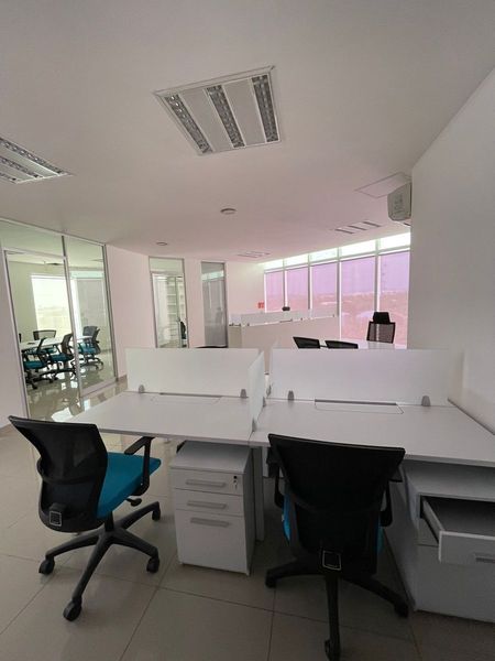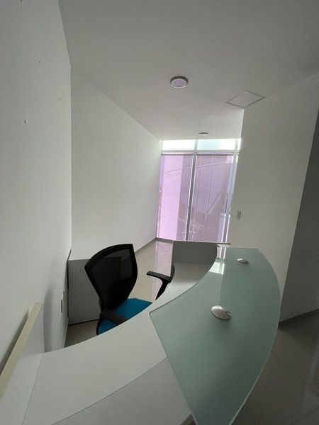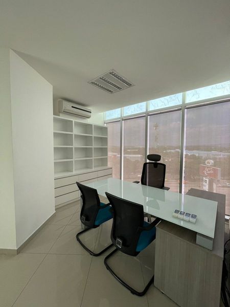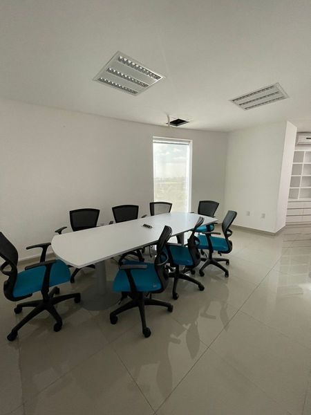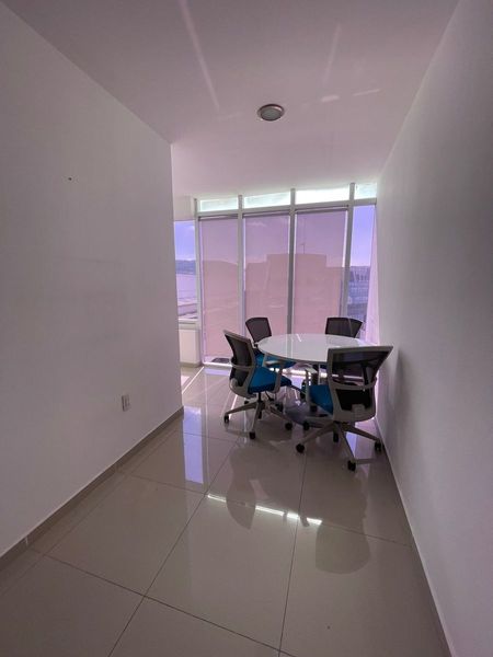 El equipamiento incluye: área de recepción , dos salas de juntas amuebladas con aire acondicionado tipo mini split, una cocineta, una oficina privada con escritorio y silla ejecutiva.