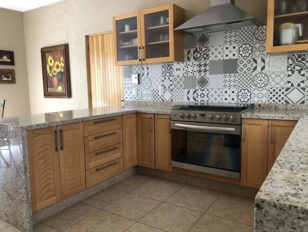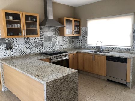 Cuenta con amplia alacena, y está cómodamente ubicada con acceso al garage para 3 autos, y al cuarto de lavado y de servicio.