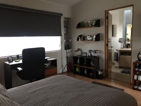 La orientación al poniente hace de este espacio exterior, que remata en una amplia terraza con oficina y baño completo, un lugar con clima muy agradable durante la mayor parte del año.