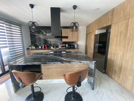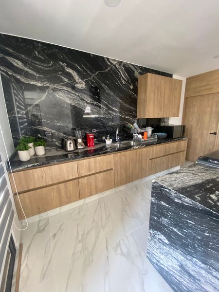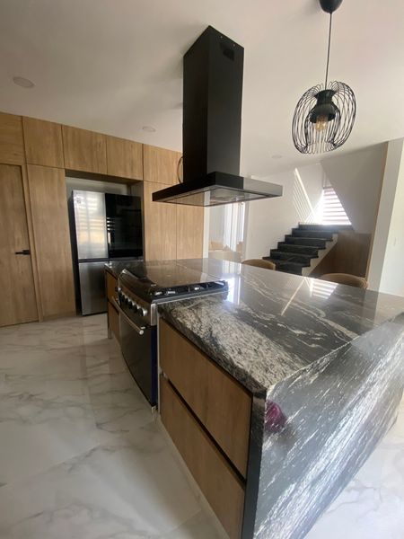 Amplia Cocina equipada con barra de granito