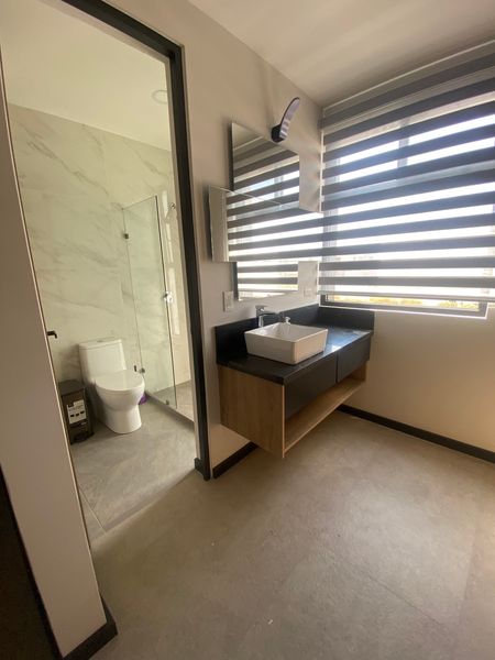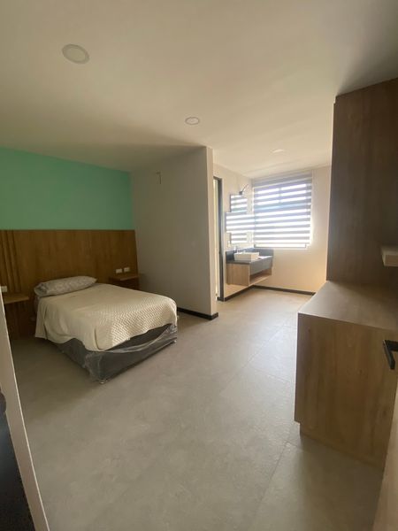 Recamara secundaria con mueble para tv, closet y baño completo (lavamanos por fuera)