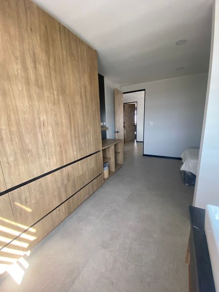 Recamara principal con mueblé para tv y para almacenamiento, ademas cuenta con closet y cajoneras , baño completo con cancel de vidrio templado
