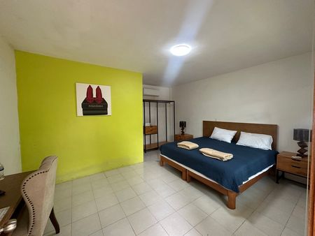 Tiene una discreta terraza con mucha vegetación, 2 habitaciones con vista a la carretera.