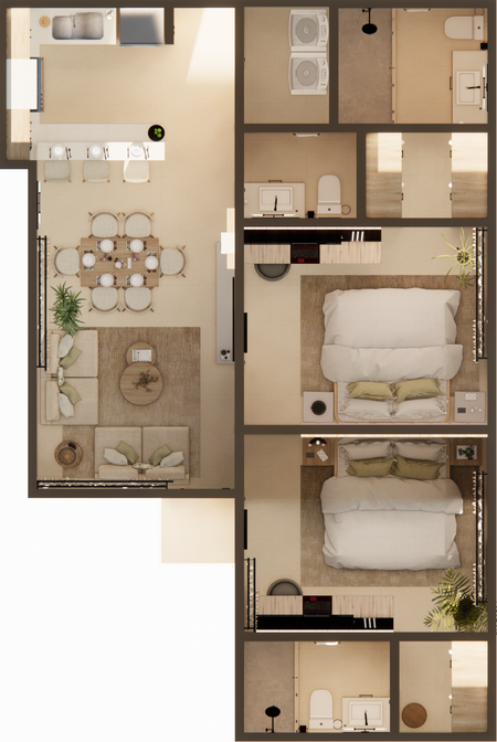 -Departamentos de 2 recamaras desde 75.70 m2.