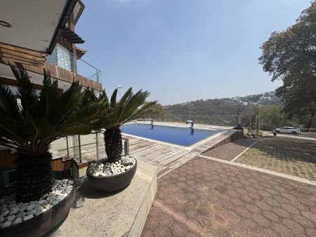 Al fondo se encuentra una ladera semi boscosa que invita a recorrerla caminando. Para el deportista que vive dentro de ti la casa cuenta con cancha de Basquetbol, Cancha de tenis, Cancha de futbol soccer, y esplendida alberca con plataforma de madera tipo deck que es un auténtico mirador en estrado para divisar su bello horizonte profundo.