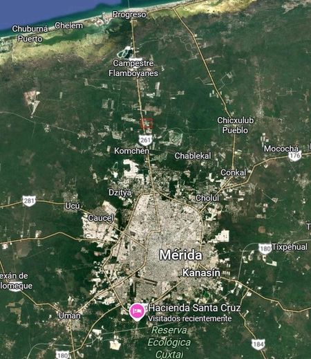Ubicado a 15 minutos del puerto de Progreso, y a 10 mins del periferico de Merida, con acceso a todos los servicios, ideal para bodega, restaurante .