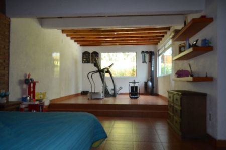 Una segunda construcción de acabado modernista en dos niveles se agrega a la oferta habitacional; ambas construcciones independientes en un entorno inmediato de árboles frutales, jardines y caballeriza lo cual le confiere el encanto de las fincas campestres mexicanas que pueden ser autosuficiente en cuanto a la producción de alimento así como con incorporación de eco tecnologías que permiten el cuidado de medio ambiente y el ahorro de energía. Tal es el caso de esta finca campestre que esta equipada con calentadores solares para los baños, paneles solares para calentar el agua de alberca y celdas fotovoltaicas que proporcionan hasta un 50% del consumo de energía eléctrica, además de un sistema de reciclaje de aguas jabonosas para riego de jardines.