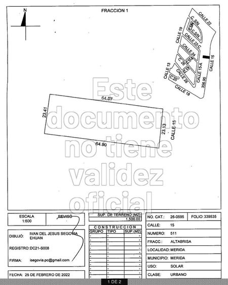 Terreno regular sobre avenida de 1,500 m2Su frente es de 23.13 metros y su fondo 64.90 metrosLa propiedad se encuentra libre de gravamen