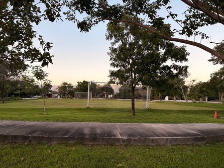 En esquina, frente al parque y cancha de futbol, juegos infantiles y área de asador