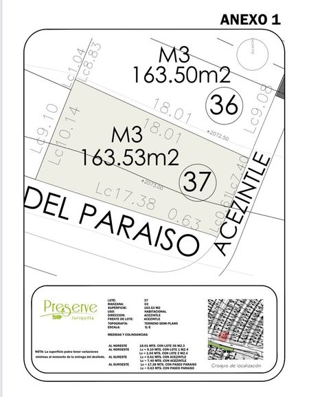 M2 TERRENO: 163.5 MTS2 EN ESQUINA