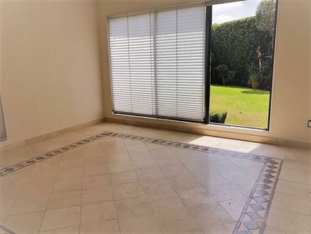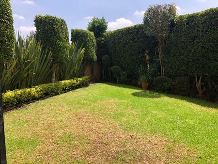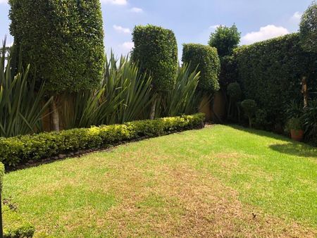 En el mejor condominio de la zona, con jardín común y terraza, estilo mexicano contemporáneo, proyecto del arquitecto Miguel Angel Cisneros. La casa cuenta con dobles alturas y amplios ventanales con muy bonitas vistas, vestíbulo, sala a doble altura, comedor con salida al jardín privado, cocina equipada, desayunador, 3 recámaras cada una con baño y vestidor, sala de tv, estudio, cuarto de servicio y de lavado y 3 estacionamientos.