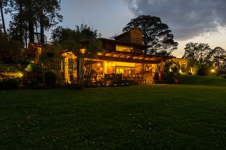Imagina despertar rodeado de naturaleza, disfrutar de chimeneas en interiores y exteriores, y aprovechar amenidades como biblioteca con +500 libros, sala de TV con Apple TV, mesa de ping‑pong, red de bádminton y estacionamiento para 6 autos.