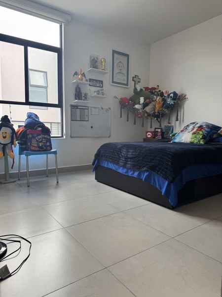 La casa cuenta con persianas y luces domóticas en sala, comedor y recamara principal.