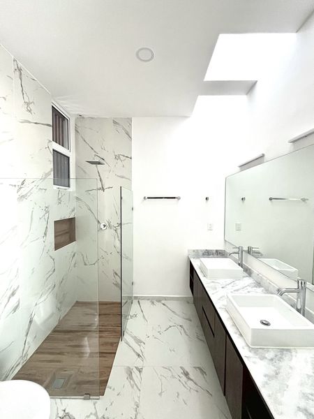 Dos recámaras, cada una con baño y clóset.