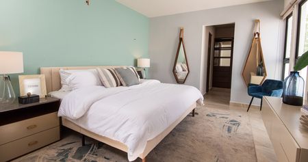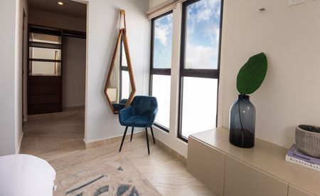 Recamara principal con baño, doble lavabo, closet vestidor y balcón